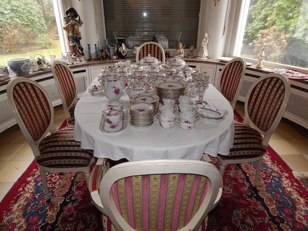 Es werden antike Möbel u. andere, Gemälde, Orientteppiche, Bronzen, Glas, Kronlüster, Tischlampen und Uhren, feinstes Porzellan, Figürlich sowie komplette Service, Klavier, Kontrabass, Geige, Trommel, Kurioses und Deko angeboten.